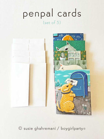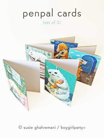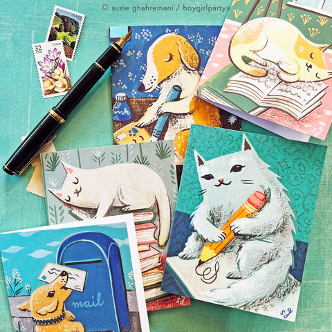 Bookish / Penpal Notecard Set (of 5) by boygirlparty – Dog Cat Note Cards by Susie Ghahremani